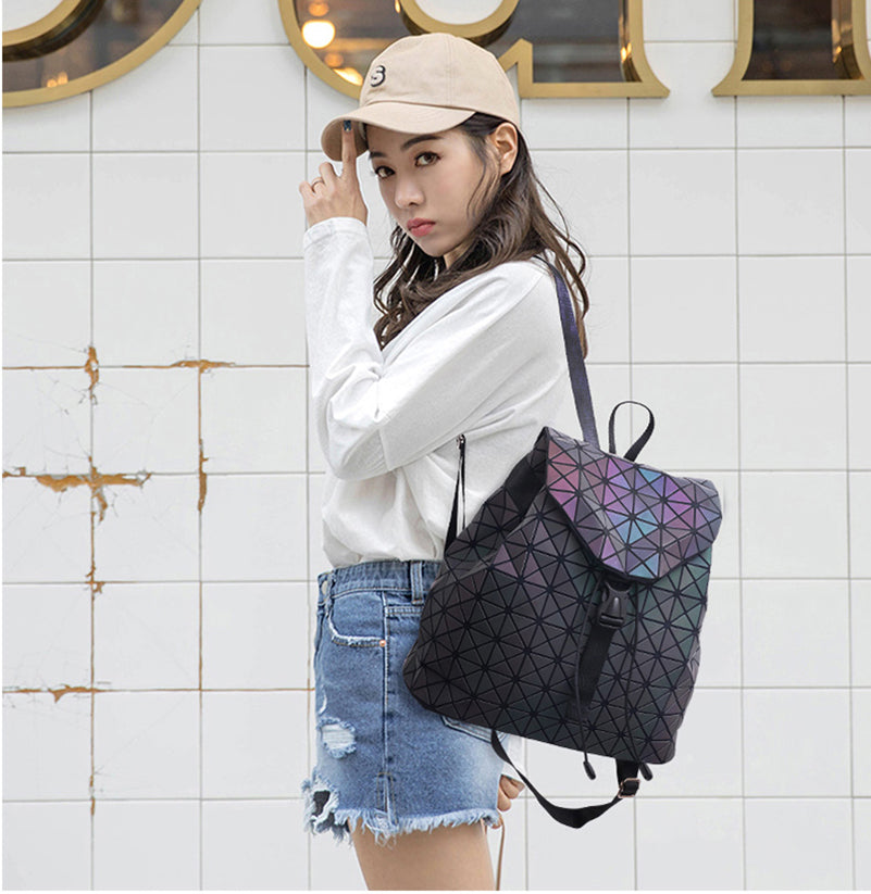 The backpack is designed with star shard geometrical patterns, and they are all over the bag that gives it a unique look. The exciting thing about this star and diamond-shaped geometrical patterns is that they reflect with different colors. Yes! You heard me right, they change colors. These geometrical patterns change their colors from deep black to dark blue, and they also can acquire the beautiful rainbow colors that look surprisingly glamorous. The rainbow colors have the high density of violet, purple, pink, green and a whole lot of other shades. These shades comprise and make the bag look beautiful as the bright ruby.